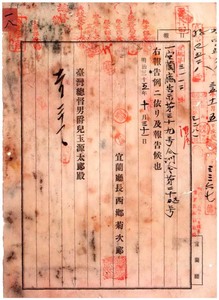 明治三十五年六月訓令第一三號警察官吏所轄內出張巡回月額旅費表中改正追加(宜蘭廳訓令第二九號)