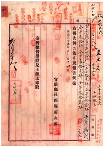 森林取締並ニ蕃人蕃地及ヒ蕃產物交換事務ニ從事スル者月額旅費支給規則制定(宜蘭廳訓令第三○號)