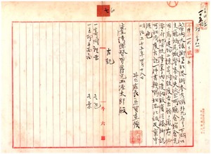 七 斗六庁李考愉・曽席珍・王子玉・褪以衡・呉彩脩・蔡川・王文章・丁貼閃・荘鳥企・李匏・呉猪羔ヨリ下湖口支庁鵝尾墩警察官吏派出庁舎宿舎ヘ充用ノ建物寄付ノ件