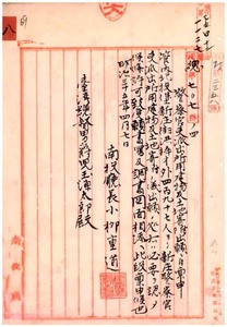 八 南投庁洪梓方外四九七名[未記載]ヨリ新庄街警察官吏派出所用建物并ニ敷地寄付ノ件