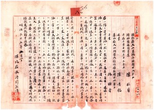 八 深坑庁隘丁設置認可并ニ担当者陳秋菊・陳嗜匏・仇選青ヘノ命令各項認可ノ件