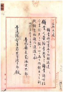 鑛第百十二號簑輪季馨石炭採掘許可書紛失ニ付再下付