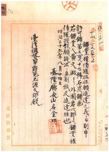 三〇 鉱第三六七号黄火淋ヘ許可ノ石炭鉱区ヲ外園岩次郎へ債権担保ノ件許可