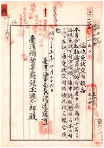八ノ一 中本注連吉・中西清太郎・郭阿現・永井発二・山崎定吉・保都房五郎・蘇悦汗・長尾政太郎・黄濂・蔡順明ヘ海技免状交付