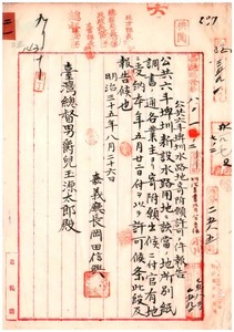 嘉義廳下公共六斗埤圳新設水路用地寄附ノ件