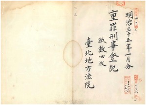 三 明治三五年一月分 重罪刑事登記台北地方法院 四枚