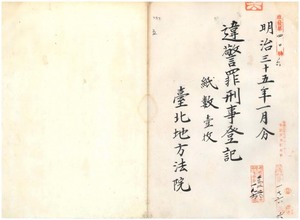 五 明治三五年一月分 違警罪刑事登記台北地方法院 一枚