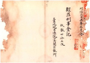 明治三十五年三月分輕罪刑事登記(台北地方法院宜蘭出張所)