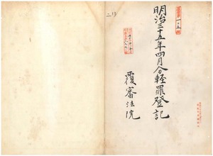 二 明治三五年四月分 軽罪登記覆審法院 台北地方法院 四枚台中地方法院 一枚