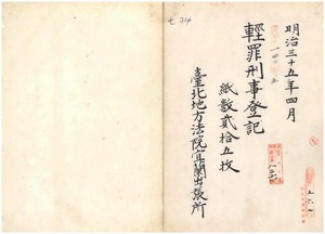 明治三十五年四月分輕罪刑事登記(台北地方法院宜蘭出張所)
