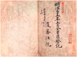 明治三十五年五月分重罪登記(覆審法院台北地方法院、台中地方法院、台南地方法院嘉義出張所、同院鳳山出張所)