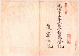 二 明治三五年五月分 軽罪登記覆審法院 台北地方法院 三枚同院新竹出張所 一枚同院宜蘭出張所 一枚台中地方法院 一枚