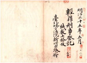 明治三十五年五月分輕罪刑事登記(台北地方法院新竹出張所)