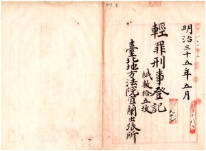 明治三十五年五月分輕罪刑事登記(台北地方法院宜蘭出張所)