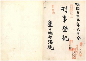 三 明治三五年六月分 重罪刑事登記台中地方法院 一八枚台南地方法院嘉義出張所 一枚