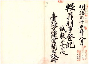 明治三十五年八月分輕罪刑事登記(台北地方法院宜蘭出張所)