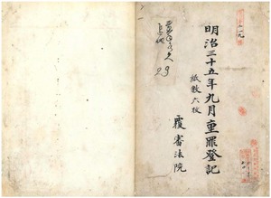 明治三十五年九月分重罪登記(覆審法院台北地方法院、台中地方法院)