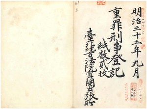 明治三十五年九月分重罪刑事登記(台北地方法院宜蘭出張所)