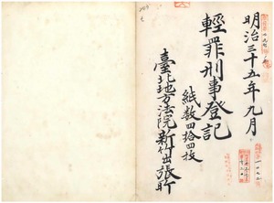 明治三十五年九月分輕罪刑事登記(台北地方法院新竹出張所)