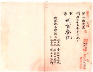 明治三十五年十月分重罪刑事登記(台南地方法院、同院嘉義出張所、同院鳳山出張所)