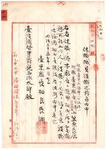 四二 休職台東庁警部小笠原長辰ニ復職ヲ命ス[別紙履歴書未綴]