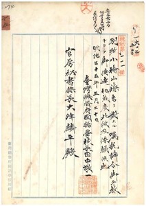 六五 小檜山鐐吉ニ対スル嘱託辞令伝達方総督府国語学校長田中敬一ヨリ依頼ノ件