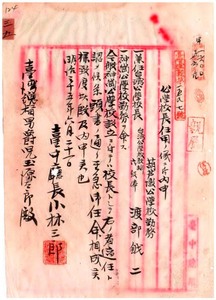 葫蘆墩公學校勤務臺灣公學校教諭渡部銊二ニ神崗公學校勤務ヲ命シ兼臺灣公學校長ニ兼任ス