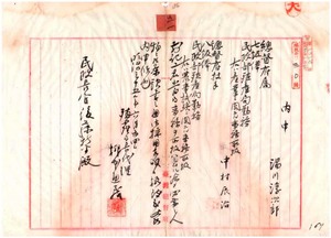 五一 文部省直轄第一高等中学校予科卒業元逓信省通信書記湯川淳次郎ヲ総督府属ニ任シ総督府殖産局勤務ヲ命シ、元農商務省雇中村辰治ヲ総督府技手ニ任シ総督府殖産局勤務ヲ命ス