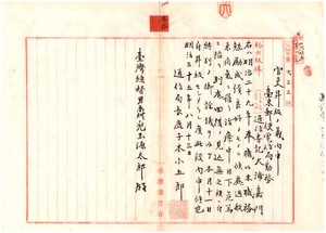 三二 台東郵便電信局勤務総督府通信書記大浦嘉門職務勉励ニ付キ病気危篤ヲ以テ六級俸ニ昇級