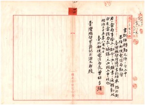 四四 基隆郵便電信局勤務総督府通信書記補東惣兵衛ニ台北郵便電信局勤務ヲ命ス