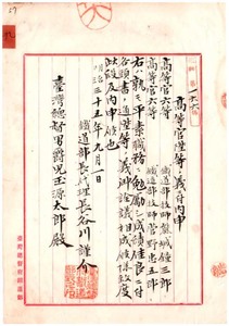 九 苗栗庁長兼臨時台湾土地調査局事務官兼総督府専売局事務官家永泰吉郎・総督府技師兼臨時台湾基隆築港局技師長尾半平・総督府法院判官大津淕次郎・総督府技師浜野弥四郎・総督府法院検察官西内金吾・臨時台湾土地調査局事務官前田前・総督府事務官伊藤金弥・総督府通信事務官曽祢吉弥・総督府海港検疫官兼総督府事務官山田寅之助・総督府技師岡田義行・臨時台湾土地調査局事務官兼総督府事務官木村大介・総督府医院医員河田守恭・総督府技師藤根吉春・斗六庁長兼臨時台湾土地調査局事務官荒賀直准・国語学校教授石田新太郎・総督府専売局事務官兼