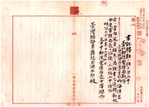 二五 台北郵便電信局勤務総督府通信書記内海洋吉ニ台中郵便電信局勤務ヲ命ス