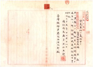 臺灣總督府屬楠正秋兼臺灣總督府通信書記ニ任シ當分民政部通信局勤務ヲ命ス