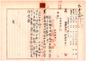 四 台南地方法院鳳山出張所ノ刑事事件取扱ニ関スル管轄ニ付キ府令発布ノ件及ヒ台南地方法院長宇佐美苗・同検察官長長谷川憲一・鳳山出張所判官望月恒造・同検察官森節太郎ニ電報通知ノ件
