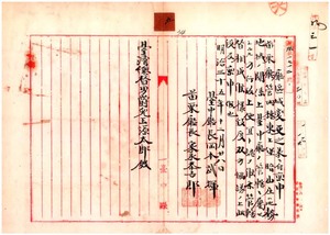 五 台中庁長岡本武輝及ヒ苗栗庁長家永泰吉郎ヨリ稟申ノ苗栗庁管内捒東上堡暗山庄ヲ台中庁ノ管轄ニ移スノ件