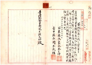苗栗台中兩廳管下蕃界附近ニ於ル境域ハ台中廳管轄ヘ決定ノ件兩廳長稟申認可及專賣局長ヘ通牒、指令第二六三號