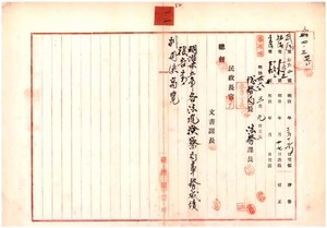 一一 明治三五年各法院検察局事務成績ニ関シ覆審法院検察官長尾立維孝・台北地方法院検察官長松井四郎・台中地方法院検察官長渡辺助治郎・台南地方法院検察官長長谷川憲一ヨリ報告ノ件