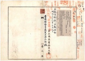 七八 第二五号 台北庁八里份堡海墘厝庄康乞ハ上下附ノ船鑑札流失ノ旨届出タル件
