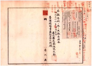 一七 第六一号 台北庁大加蚋堡大稲埕法主公街陳耀彰・芝蘭二堡北投庄中街陳雲振・同堡■(口+其)里岸中街謝錦王ノ阿片烟膏請売営業ヲ廃業ス
