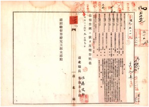 一二二 第一六六号 台北庁擺接堡加蚋仔庄楊路・大加蚋堡大稲埕港辺街林再生・大加蚋穂艋舺王公宮口街林樹・芝蘭一堡里族庄康太平・擺接堡湳仔庄簡慶海・芝蘭一堡北勢湖庄呉旺玉・大加蚋堡頂塔攸庄呉陽ハ船鑑札亡失ニ付キ該鑑札ヲ無効トス
