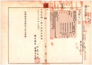 一三二 第一七七号 台北庁興直堡新庄武廟頂街高玉山・八里份堡貴仔坑庄李長発・芝蘭二堡北投庄許徳定・同堡和尚州和尚港庄陳東西・芝蘭三堡滬尾新店街黄宝成・同堡滬尾永吉街陳枋ニ阿片烟膏請売営業ヲ特許ス
