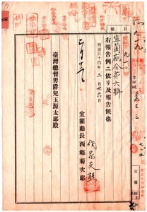 四 第六号 明治三四年宜蘭庁庁令第五号貸座敷及ヒ娼妓取締規則中改正ノ件
