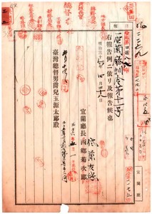 三五 第一一号 明治三五年宜蘭庁訓令第一三号警察官吏派出所轄内出張巡回月額旅費等級表中改正ノ件