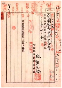 二五 第二六号 宜蘭庁浮洲堡浮洲庄荘龍盛・頭圍堡大坑罟庄陳水典・紅水溝堡阿兼城庄謝文盛ハ銃砲所有特許証紛失ニ付キ該特許ヲ無効トス