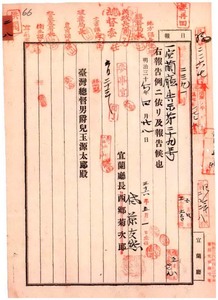 二八 第二九号 桃仔園庁管内ニ豚疫発生ニ付キ同庁ヨリ通知ノ件
