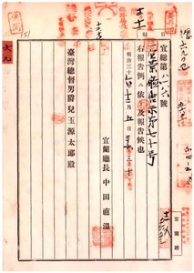 六九 第七〇号 恒春庁管内ヲ豚疫流行地ト認メ病毒伝播ノ疑アル物品ノ運搬ヲ禁止シタル旨同庁ヨリ通知ノ件