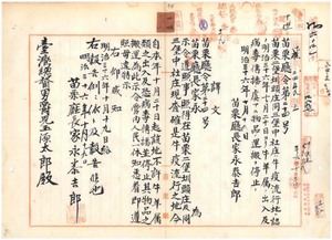 二四 第二四号 苗栗庁管内苗栗二堡圳頭庄・苗栗三堡中社庄ノ牛疫流行地ニ対シ牛羊属及ヒ物品ノ運搬ヲ停止ス