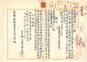 三〇 第三一号 苗栗庁管内苗栗二堡圳頭庄・苗栗三堡中社庄ニ発生シタ牛疫熄滅ニ付キ当該地域ニ発令シタ牛属及ヒ物品ノ運搬ヲ停止シタル処置ヲ解除ス