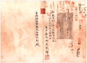 台中廳廳令第三十三號牛疫發生ニ付キ梀東下堡軍切庄外一庄ニ牛羊屬ノ出入及ヒ病毒傳播ノ虞アル物品運搬停止ノ件