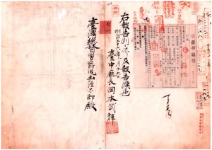 七一 第三号 台中庁頭圍堡港仔墘庄黄送・武壮圍堡■(广+部)後庄藍石頭・頭圍堡大坑罟庄陳球ノ船鑑札無効ニ付キ宜蘭庁ヨリ通知ノ件
